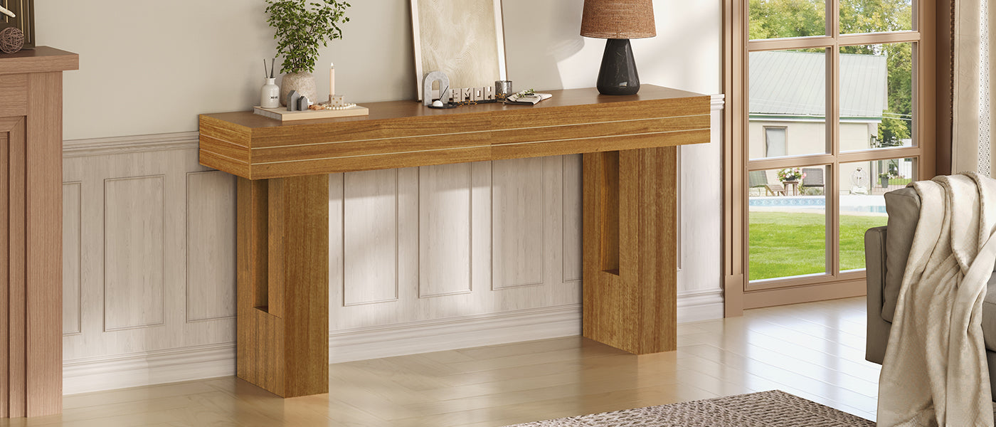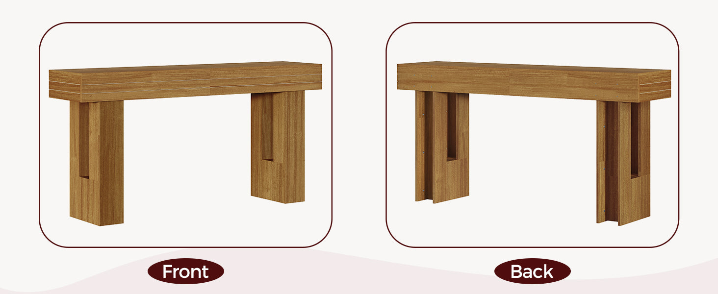 Grooved Legs for Modern Style:The 63'' long console table features rectangular grooves on its legs, adding a modern geometric touch and visual depth. This wood console table looks refined yet sturdy, making it perfect as a modern console table, farmhouse console table, or console and sofa table. The detailed leg design enhances craftsmanship while providing a stable base for console table ornaments or daily essentials.