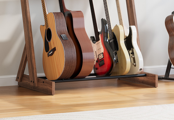 The stand features a triangular base design, which provides exceptional stability and balance. The combination of wooden construction and a reinforced metal frame ensures that your guitars stay securely in place, even during daily use. It’s perfect for avoiding accidental falls or knocks.